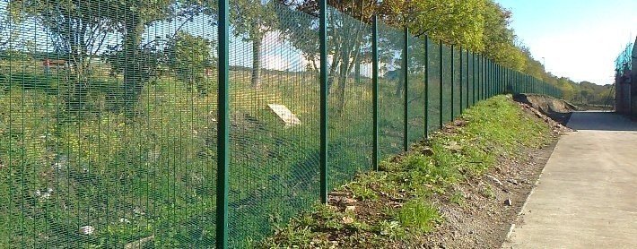 Summary: a high security fence. Usage: secure units, prisons, military, utilities, schools, and private businesses involved in, e.g. petro chemicals, pharmaceuticals, waste, retail, automotive. Characteristics: rigid rectangular welded panels with small gaps, very difficult to climb; see through; durable; presentable, anti-vandal fixings; widely available. Other Names: Prison Fencing, Zenith, Rebound Mesh, 358, Fortex, Fortress, 75 x 12.5 x 4